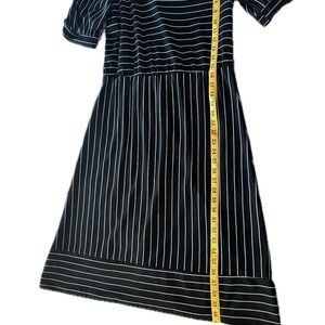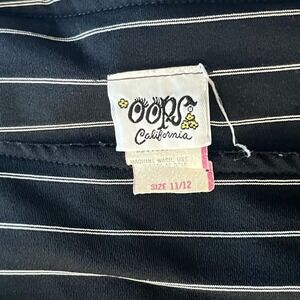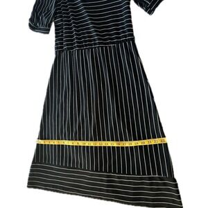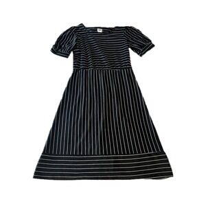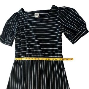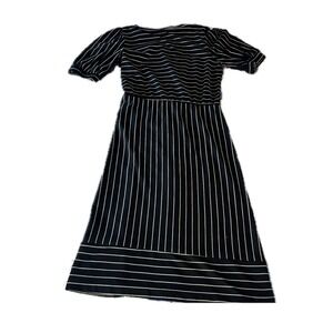Vintage 70s Oops California Black White Striped Puff Sleeve Midi Dress Sz 11/12