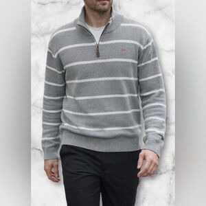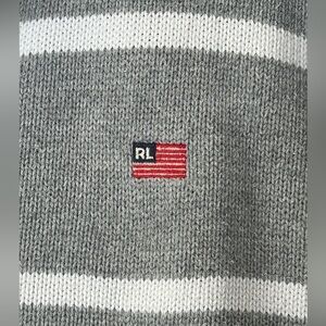 Vintage Polo Ralph Lauren Men’s Gray White Striped 1/4 Zip Sweater with Flag Logo in
