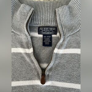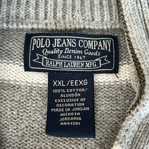 Vintage Polo Ralph Lauren Gray White Stripe 1/4 Zip Sweater Flag Logo Size XXL