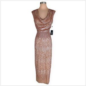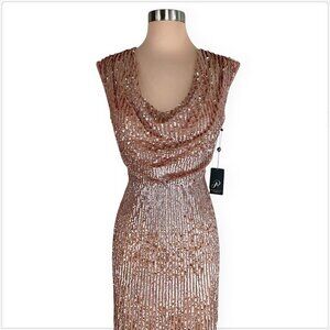 Adrianna Papell Rose Gold Cowl Neck Beaded Sequin Column Gown Dress NWT NEW 4