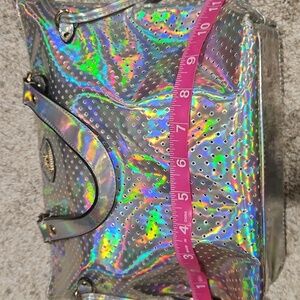 Dazzle with this Juicy Couture tote. Iridescent silver finish. holographic purse, some signs of wear on corners, comes with longer attachable handle, make an offer if interested