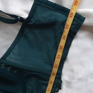 This green Victoria's Secret corsett style bra is very sexy. Size 36C. Adjustable straps. Wide waist band with 6 hooks in back. Lined and lightly padded. Cups are covered with lace. Make me an offer.