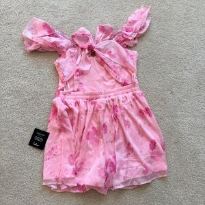 Lulu's Adorable Existence Pink Floral Flutter Sleeve Tie Back Romper Size Medium