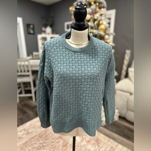 Madewell Women Sweater Blue Basketweave Knit Pullover Chunky Crew Size XS NWOT