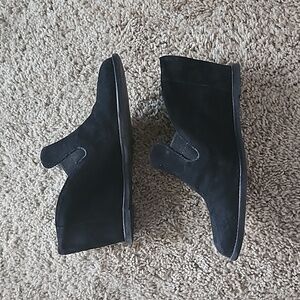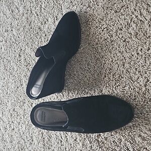 Johnston & Murphy, black suede wedge mules, size 8