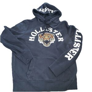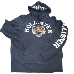 Hollister Hoodie Mens Small Black Tiger Graphic Logo Pullover Sweatshirt