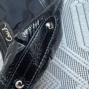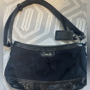 Coach Black Signature Canvas and Patent Leather Shoulder Bag