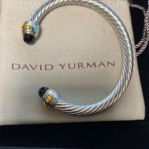 David Yurman Silver Cable Bracelet with Gold and Black Accents 7mm