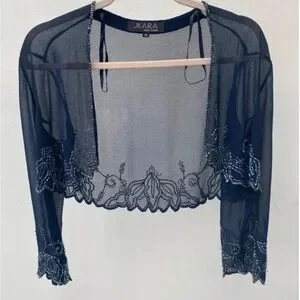 Beautiful JKARA New York Navy Blue Beaded Sheer Chiffon Bolero jacket