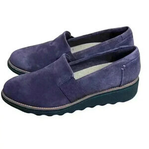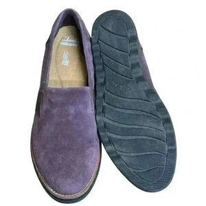 Clarks Collection Sharon Dolly Slip On Loafer Aubergine Dusty Purple Suede 6.5