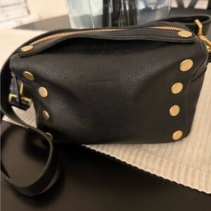 Kayce saddlebag crossbody (approx 8” x 8.5” x 3”) with matching 5 North wallet. Both in great condition. Black and tan leather with brushed gold accents. Includes dust bag.