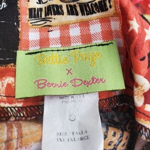 Dress with BBQ print. Features vibrant red and black colors. Perfect for casual outings. waist 17 1/2 bust 20. I have tied knots in shoulder straps
