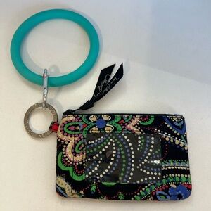 vibrant Vera Bradley wristlet with a colorful pattern, features a turquoise key ring for easy carrying!