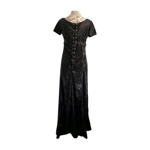 Tags: gothic maxi dress crushed velvet black corset back dress witchy formal 90s goth velvet gown dark romantic