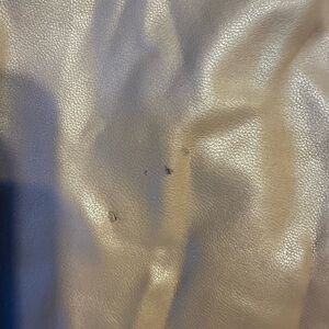 Has two tiny holes on the back left leg. Priced accordingly.