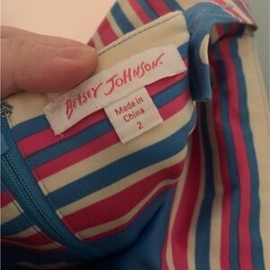 A gorgeous piece of Betsey Johnson history! This authentic vintage dress was purchased in Spring 2008 from the original Betsey Johnson Soho store in NYC when Betsey herself was still creative director and head of the brand. This cheerful piece embodies her signature playful, feminine aesthetic with bold colors and whimsical details.