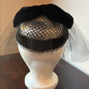 Channel your inner Jackie O in this amazing vintage 1960s pillbox hat. The hat is in exceptional condition for its age and the veil is fully intact with no damage. The black velvet ribbon is in amazing condition. The circumference around the outside hat band is 21.5 inches