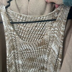 Step out in style with this elegant tan swim coverup. Perfect for a day at the beach or poolside lounging.