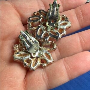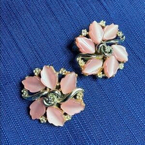 Vintage Elegant Floral Earrings Clip on Pink Cluster Petals Flower Gold Tone