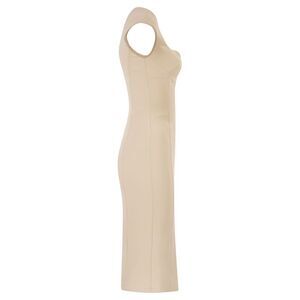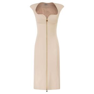 Fitted sheath dress in double stretch crepe. The dress has a deep sweetheart neckline, short cap sleeves and a midi skirt. The silhouette is defined by stitched seams, reminiscent of a corset. The chain zip with padlock-shaped slider adds a touch of sparkle. - Monogram satin lining - Internal moulded cups - Zip fastening DESIGNER ID: AB90061E2 193