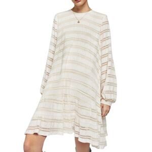 Anine Bing Viola Dress Ivory Cream Sheer Inset Stripes Boho Drapey A Line