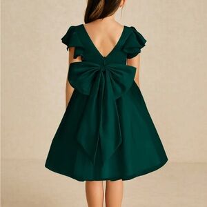 Charming deep green dress with a large back bow. Perfect for formal events. Stylish and comfortable.
