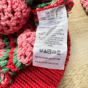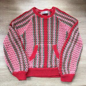 New Free People Dayton Pullover Crochet Knit Striped Sweater Red Pink XS