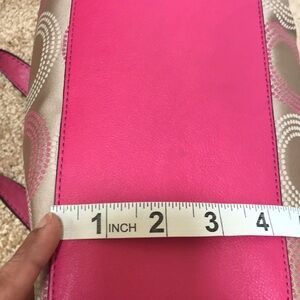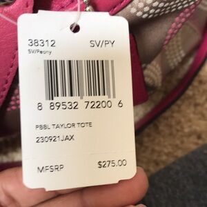 New! Coach pebble Taylor tote. Top zipper one zippered and two slip pockets inside . Has short and long strap. Has negligible faint marks from storage on inside lining and front as seen in last two pics. Otherwise never used .