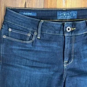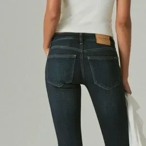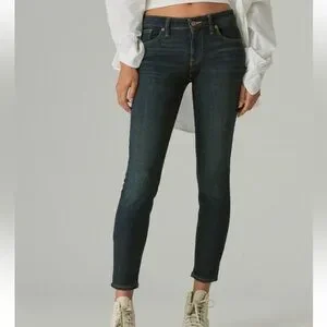 Chic and versatile skinny jeans. Deep blue hue. Perfect for casual or dressy looks. Lucky Brand Lolita Skinny jeans in a rich dark wash with subtle fading. Flattering mid-rise fit with a sleek skinny leg—perfect for everyday wear or dressing up. A classic, versatile denim staple. Ps. This jean shapes your backside to look great from every angle. With a skinny fit from the top through the ankle, this style is designed to show off your curves.