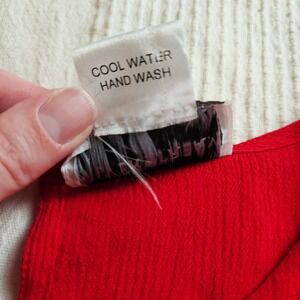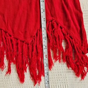 Silverstream Red Rayon Fringe Sharkbite Hem Short Sleeve Boho Top Women S