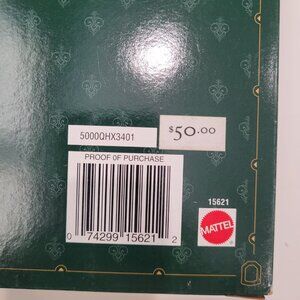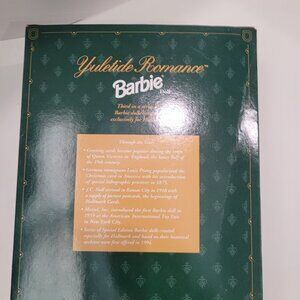 The "Yuletide Romance Barbie Hallmark Special Edition Doll" is a 12-inch vinyl fashion doll manufactured by Mattel in 1996. This Barbie doll, designed by Avon for Hallmark, features dark brown hair styled in a bun, light complexion, and green eyes. It is a part of the Barbie product line and comes in its original packaging, unopened. This special edition doll is a Christmas-themed collectible with a festive theme of fashion and beauty, making it a desirable addition for Barbie enthusiasts and collectors.