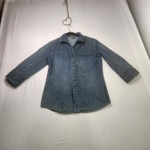 Timeless blue button-up from Chico's. Effortlessly chic and perfect for everyday style with a clean, polished look.
