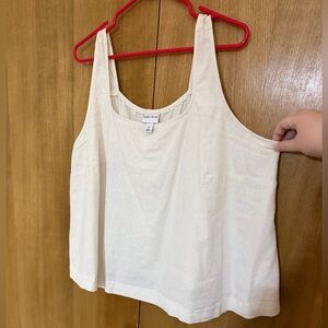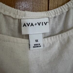 AVA & VIV Linen Blend Tank Top 1X Ivory Button Back