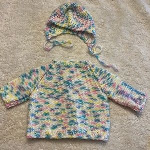 BRAND NEW hand knitted Infant Sweater hat set