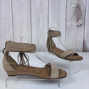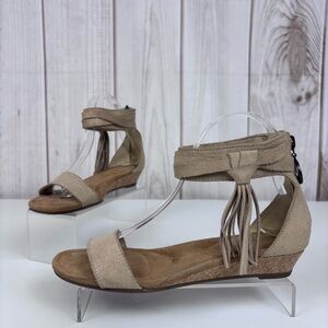 Koolaburra by Ugg Frosted Suede Leather Sandals Tassel Wedge Shoes Tan Size 7.5