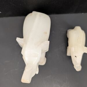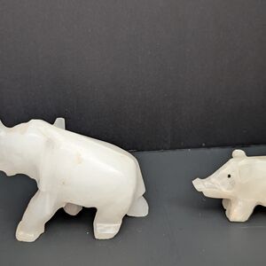Vintage elephant mom and baby carved stone figurines. 2" - 4" tall