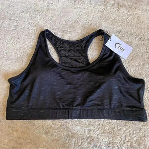 Zyia NWT Heathered Black Bomber Sports Bra Mesh Lace Back: XXXL