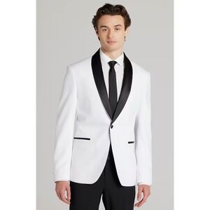 Egara Mens Slim Fit Tuxedo Jacket White Black Shawl Lapel Dinner Blazer 38R-flaw