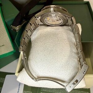 Unidirectional Rotating Bezel, Scratch Resistant Sapphire Crystal, Exhibition Caseback, Black Dial, Titanium & Steel Case, Stainless Steel Bracelet & Clasp. *Extra Fabric Strap & SS Clasp* WR to 200 m. **Authentication Done**