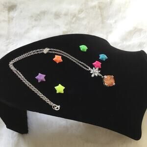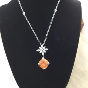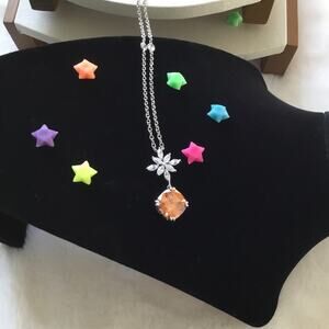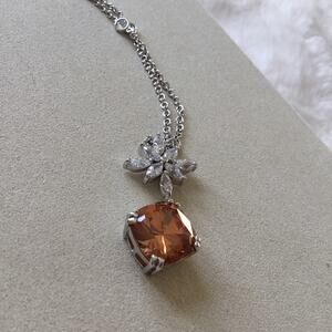 DESCRIPTION: A stunning cushion-cut yellow crystal with sparkling flower in an interlocking necklace.