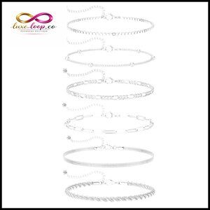 Brand new, never worn, and in flawless condition — this captivating 6-piece silver bracelet set delivers a dainty, minimal chic look perfect for layering, standalone wear, or gifting for various occasions. The set is hypoallergenic, adjustable, and comes beautifully packaged.