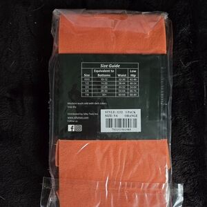 Bright orange tights from the brand Silky Toes. Their size 5x says it would fit a 28-30 pants size. I bought these when I wa a 4x (I may have sized up). New in package, never worn.
