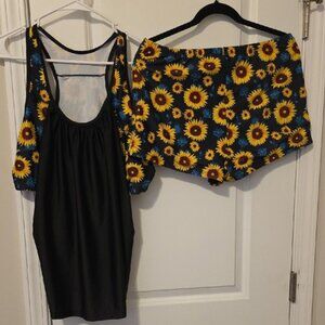 SheinSunflower Print 2 Piece Swim Suit With Shorts 2X