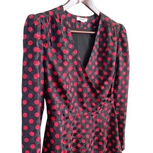 Re/Done Polka Dot Silk Satin Jacquard Wrap Mini Dress