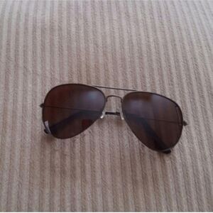 Two boho headbands, American Eagle charm bracelets, blue earrings from Maurices about 1.5 inches long, brown earrings from Maurices, an adjustable cross necklace, and a color changing mood ring about a size 6 or 7. All in excellent condition, the headbands and cross necklace have never been worn. Comes with free Estee Lauder Makeup bag, new. Dark brown retro aviator sunglasses, new! Dark gray knit beanie from Garage Clothing with a pair of dark red gloves, new and never worn. Plus two black chokers, not pictured yet.