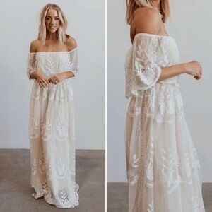 Baltic Born Leon Off Shoulder White Floral Lace Boho Maxi Dress Medium NWT