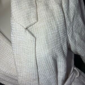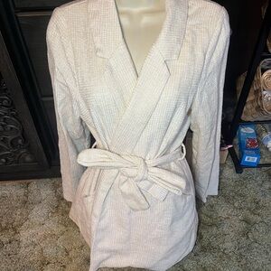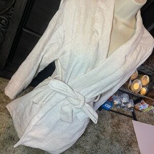 Soft cream robe with a textured finish. Features a stylish belt tie. Ideal for cozy evenings.