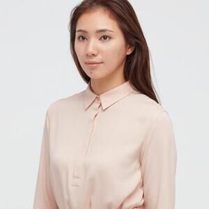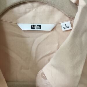 This Uniqlo pink shirt dress is a must-have for any wardrobe. Crafted from soft and lightweight rayon, it offers a supple texture and a flattering silhouette. Designed with long sleeves and a shirt-like hem for ease of movement, this dress is perfect for both casual and dressy occasions. Its wrinkle-resistant fabric minimizes creasing, even after washing, making it an ideal choice for busy days or travel.