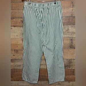 Hill House Cypress striped pajama Pants in a size Medium. These pants are cropped and have an elastic drawstring waistband for a flexible fit. Front slash pockets. Perfect for lounging around on lazy days! Pre-loved great condition.