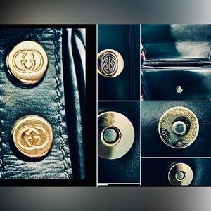 three open leather divided sections and zip pocket.. has the logo buttons on each side front snap all Gucci all authentic all original has only been lightly polished a couple of times as needed. Very easy to maintain .Classic look in excellent condition comes with a vintage Gucci duster that I have. For disclosure purposes only :